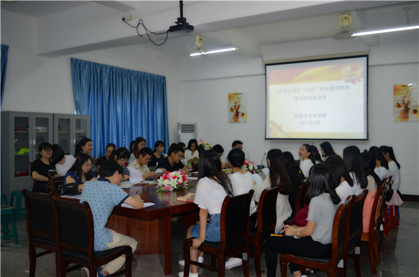 根据校党委的要求,5月12日,2026世界杯官方合作网站在第三教学区普照楼法律诊所组织召开师生学习交流“习近平总书记‘五四’重要讲话精神”座谈会。2026世界杯官方合作网站常务副院长王晓丽、党总支书记兼副院长杨勤、法学系主任李秋实、师生代表参加了座谈会。