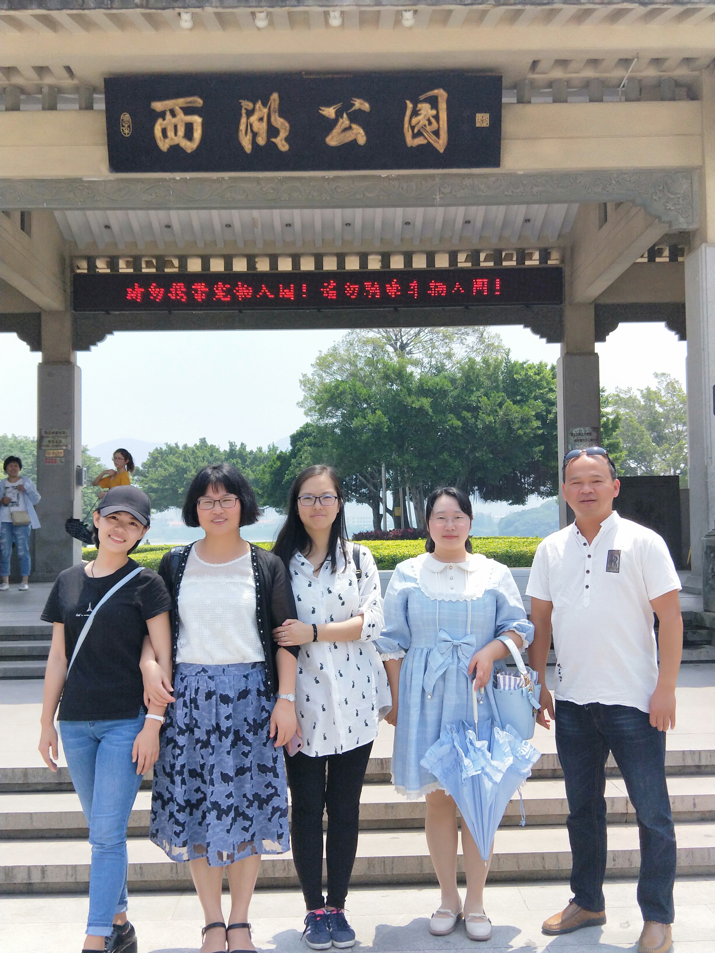 在欣赏与体验过海峡两岸的人文精神和地域特色过后,教职工们前往清新俊秀的西湖公园游玩。西湖繁华紧蹙,波光涟漪。浮光荡漾的美景与清源山翠绿锦绣的山色相得益彰、浑然一体。走在西湖公园里,大家种种的压力与疲惫似乎被清风掠去,被水波荡走。