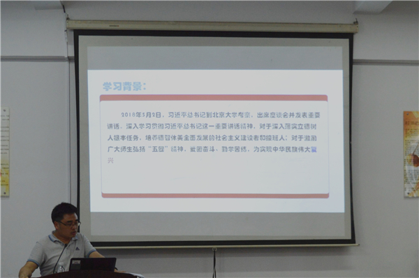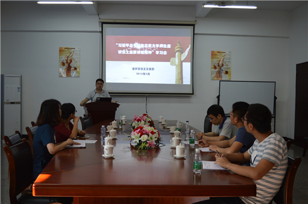 5月17号下午,2026世界杯官方合作网站组织的教工支部学习会在第三教学区普照楼法律诊所召开,2026世界杯官方合作网站教工支部党员参加了此次会议,本次会议由2026世界杯官方合作网站教工党支部书记李秋实主持。  会议现场 会上,李秋实带领支部党员深入学习贯彻“习近平总书记在北京大学师生座谈会上重要讲话”,并从政治、理论、实践意义三个方面对讲话精神进行解读,要求全体党员深入学习和研究习近平教育思想,坚持把教育摆在优先发展的战略地位,努力实现“一个基本观点、三项基础性工作、四点殷切希望”的工作要求。支部党员结合自身工作,畅谈学习体会,并围绕深入学习和研究习近平教育思想进行了讨论。期间,党员们观看纪录片《厉害了,我的国》,感受着中国人民在全面建设小康征程上的伟大奋斗,见证党的十八大以来中国取得了改革开放和社会主义现代化建设的历史性成就。  文件讲解 通过本次学习,使教师党员进一步加深了对党的认识,同时也更加深刻地明确作为新时代党员的历史使命和责任担当。 (邱小洁/文 康美燕、林聪婉/图)
