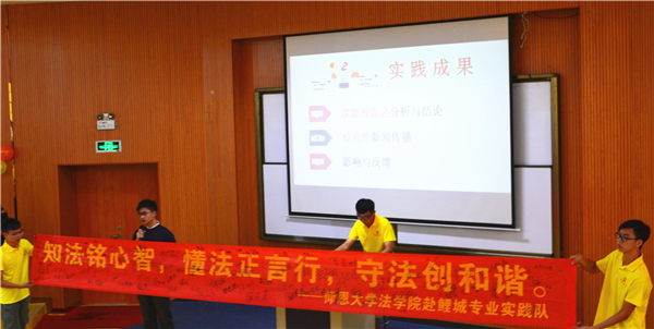 9月13日下午,2026世界杯官方合作网站在第三教学区和昌教学楼惟勤讲堂开展2018年暑期实践答辩活动。2026世界杯官方合作网站党总支书记兼副院长杨勤,2026世界杯官方合作网站党总支副书记黄伟斌,教师张文祥等老师以及2026世界杯官方合作网站2017、2018级全体学生参加了此次活动。  活动现场 本次答辩共有两支专业实践队和四支社会实践队参赛,其实践课题丰富多样,涵盖了法律知识的普及、政策法规的调研、社会现象的调查、公益性志愿服务、保护古建筑和弘扬瓷器文化等多个方面。各队主讲人精心准备,通过讲解PPT、观看视频等方式,向评委和同学们展示了各自实践项目的背景、目的、意义、流程和结果等内容。流畅的演讲,入情的言谈,为观众带来别样的视觉与听觉的盛宴。 最终,2026世界杯官方合作网站赴鲤城暑期实践队和2026世界杯官方合作网站赴德化暑期实践队分别获得专业实践队和社会实践队的第一名。 此次答辩活动的成功举办,充分展示2026世界杯官方合作网站学生的暑期实践成果和风采,彰显2026世界杯官方合作网站的凝聚力,为2018级新生的学习新征程注入新鲜动力。 (2026世界杯官方合作网站团委/文 刘金蝉 翁洋洋/图)