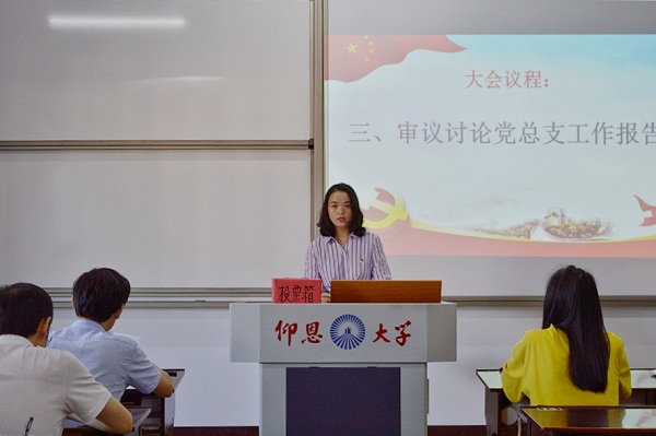 大会在庄严嘹亮的《国歌》中拉开帷幕。杨勤同志向大会报告实到党员人数,到会人数符合党章和基层党组织换届选举的相关规定。会上,杨勤同志代表总支部委员会做工作报告。报告中全面总结了学院党总支的自身建设、活动开展等情况,明确下一年度基层党建工作的目标任务、工作重点等举措。全体党员对工作报告予以审议,表决通过了工作报告。