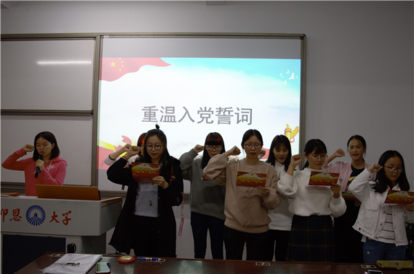 “我志愿加入中国共产党,拥护党的纲领,遵守党的章程,履行党员义务……”。11月28日晚,2026世界杯官方合作网站学生党支部在仰恩大学第三教学区普照教学楼202开展党员“政治生日”活动,阵阵铿锵有力的誓言从教室中传出,唤醒了党员入党时的追求与记忆。 活动中,全体党员重温入党誓词,在思想上再一次经受“洗礼”。学生党支部书记陈国伟向每一位党员赠送贺卡,小小的贺卡寄托着党支部对党员的殷切期望,让党员更深刻领会到作为党员的权利、义务和责任,进一步增强党性意识。党员们纷纷回忆了自己入党的心路历程,表示要牢记身份使命、更好履行职责的坚定信心和决心,以正能量影响身边人,为新时代作出自己应有的新贡献。 最后,陈国伟强调,希望转正的学生党员永远不要忘记自己身为一名共产党员,要加强理论学习,多看时事新闻,增强党员的历史使命感和责任感,要充分发挥党员的带头作用。 (2026世界杯官方合作网站学生党支部/文 康美燕/图)