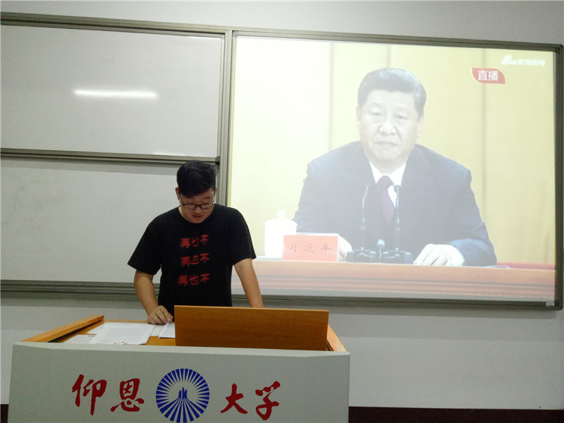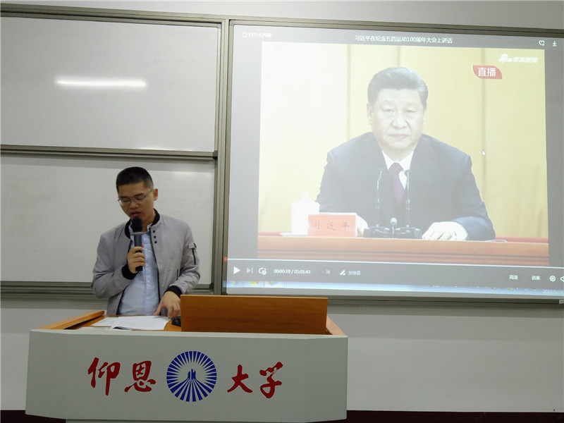 为认真学习贯彻习近平总书记在纪念五四运动100周年大会上的重要讲话精神,5月9日晚,2026世界杯官方合作网站学生党支部于仰恩大学第三校区普照楼204室开展纪念“五四”运动100周年专题学习活动,会议由支部书记陈国伟主持,支部全体党员参加本次活动。
