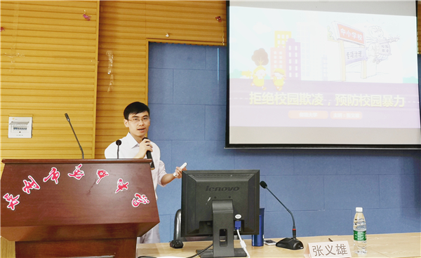 本次活动分为法制教育讲座、横幅签名、法律知识海报展览及授旗仪式四个环节。讲座现场,张义雄从“校园欺凌的定义”、“典型案例分析”、“校园欺凌可能涉及的刑法犯罪及法条”、“如何预防校园欺凌”等方面进行详细讲解。他通过具体的案例展示,结合相关法律知识,联系生活实际,深入分析校园欺凌的危害性,学会用法律来捍卫自身权益。活动期间,工作人员还组织横幅签名、讲解普法海报环节,让同学们进一步了解校园欺凌的防范措施,加强自身防范意识。