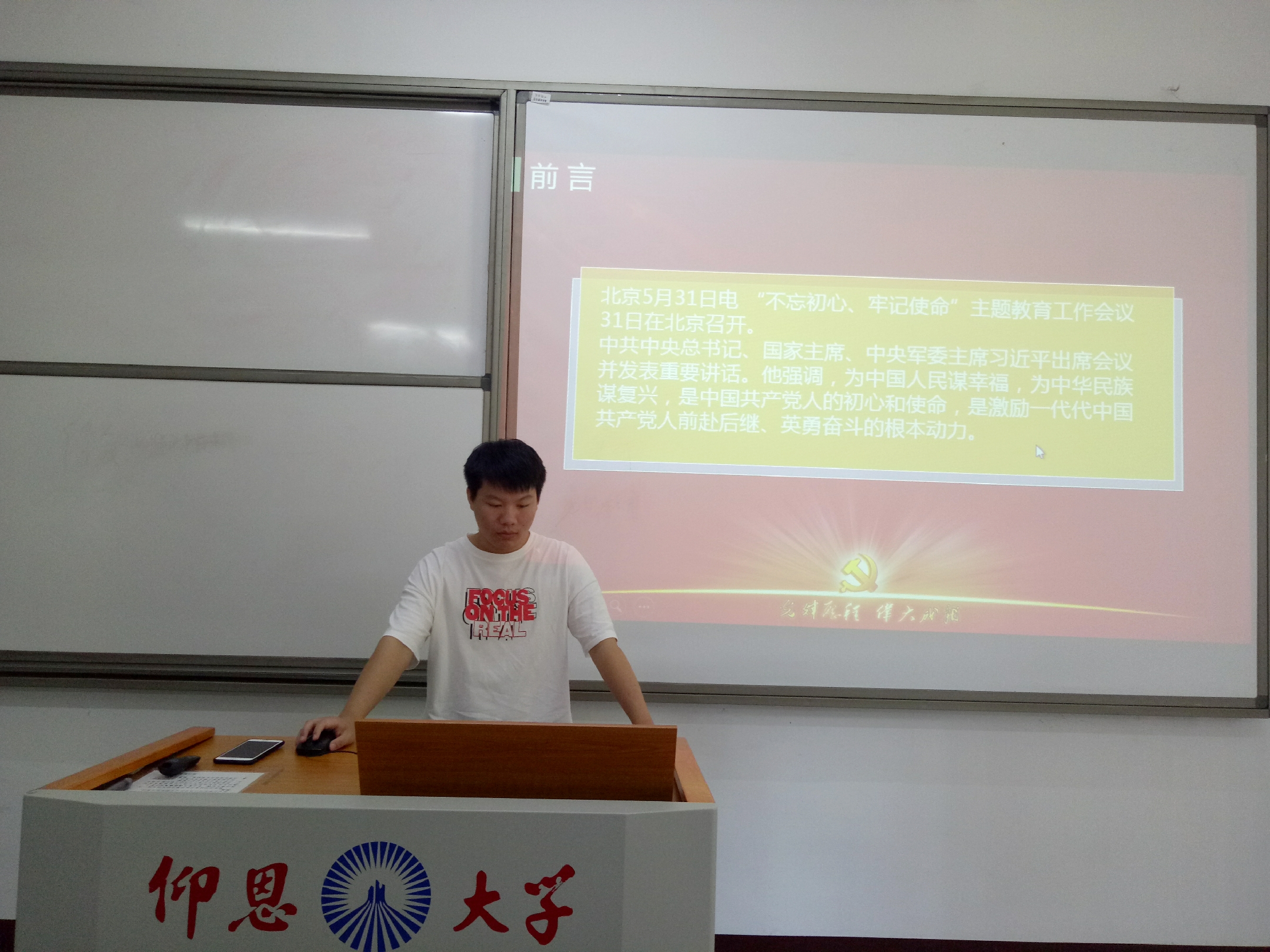 6月3日晚,2026世界杯官方合作网站学生党支部于仰恩大学第三校区普照楼204室开展“不忘初心、牢记使命”主题教育学习会,会议由支部书记陈国伟主持,支部全体党员参加了本次活动。
