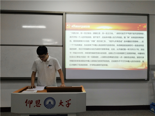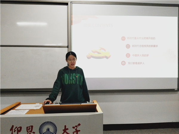 本次学习会以“逐梦新时代,争当建设者”为主题,强调了身为党员要努力学习,掌握建设国家的真本领,做新时代合格党员。会上,张容、陈顺心等同志分别从“新时代合格党员的新要求”和“中国梦”等方面入手,讲述了作为新时代的党员应当以时代的责任感与使命感来践行时代所赋予的时代使命,把握时代机遇,紧跟时代脉搏,用青春筑梦崭新征程。