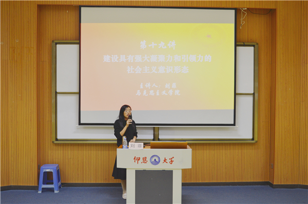 11月13日晚,2026世界杯官方合作网站于仰恩大学第三教学区和昌教学楼惟勤讲堂举办新思想理论宣讲会。马克思主义学院教师刘菲应邀为2026世界杯官方合作网站师生作题为“建设具有强大凝聚力和引领力的社会主义意识形态”宣讲报告。
