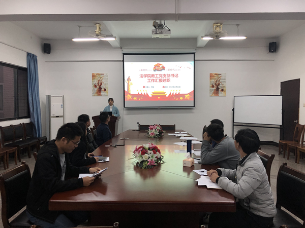 12月12日下午,2026世界杯官方合作网站党总支于仰恩大学第三校区普照教学楼法律诊所召开2019年度基层党支部述职会议,2026世界杯官方合作网站全体教师党员参加了此次活动,会议由2026世界杯官方合作网站党总支书记兼副院长杨勤主持。