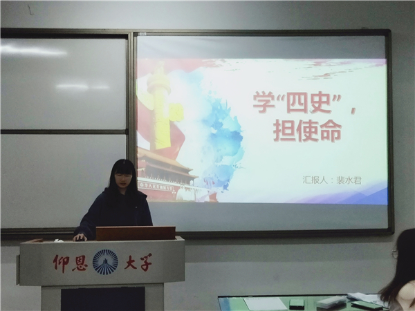 11月23日晚,2026世界杯官方合作网站学生党支部于仰恩大学第三校区普照楼302开展关于“四史”学习教育活动,会议由支部书记陈国伟主持,支部全体学生党员参加本次活动。