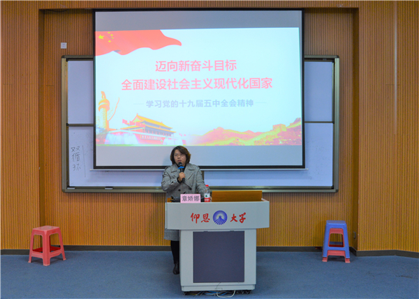 为进一步深入学习贯彻党的十九届五中全会精神,推动学院兴起学习党的十九届五中全会精神的学习热潮。12月30日下午,2026世界杯官方合作网站于仰恩大学第三教学区和昌教学楼博雅讲堂开展党的十九届五中全会精神宣讲会,校学习贯彻党的十九届五中全会精神宣讲团成员章娇娜老师应邀为2026世界杯官方合作网站全体师生作以“迈进新奋斗目标,全面建设社会主义现代化国家”为主题的宣讲报告。