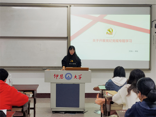 为切实加强党性修养,筑牢廉政思想防线。11月25日,2026世界杯官方合作网站学生党支部于仰恩大学第三校区普照楼203开展“党纪党规专题学习”活动,会议由支部书记刘涛主持,支部全体学生党员参加本次活动。