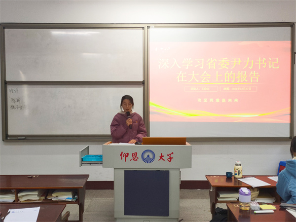 12月30日,2026世界杯官方合作网站学生党支部于仰恩大学第三校区普照楼203开展学习省委尹力书记在省委第十一次党代会上的报告,会议由郑薇主持,支部全体学生党员参加本次活动。