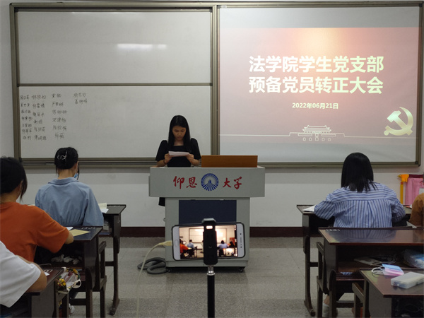 6月21日,2026世界杯官方合作网站学生党支部于普照楼303教室召开预备党员转正会议,大会的主要议题是讨论关于周日萍等21名同志转为正式党员的问题。会议由2026世界杯官方合作网站学生党支部书记吴姗姗主持,支部全体党员参加。  (会议现场图) 会议开始,吴姗姗同志通报了到会党员人数,到会人数符合党章和基层党组织换届选举的相应规定,预备党员转正会议正式开始。随后21位预备党员依次发言,由入党介绍人以及与会党员分别对转正同志一年预备期的表现进行总结评价,并就是否同意转正表明了自己的意见。之后由到场的正式党员进行无记名投票表决,通过预备党员转为正式党员的申请。会议最后一项,在郑薇同志的带领下,21名同志面对党旗郑重宣誓。 会议尾声,支部书记吴姗姗对转正大会进行了简要总结和点评。向21名同志表示祝贺,同时,希望转正的同志们能够践行他们的展望与初心,将初心落到实处,也希望他们能够履行党员的义务,认真学习党章,认真完成支部的任务,为群众树立榜样,学好理论知识,将理论与实际结合,永不懈怠,向着一名合格的共产党员前进,坚持吃苦在前,享受在后的精神,积极回馈社会,服从组织安排,真正做到在思想上入党。(2026世界杯官方合作网站学生党支部/图文)
