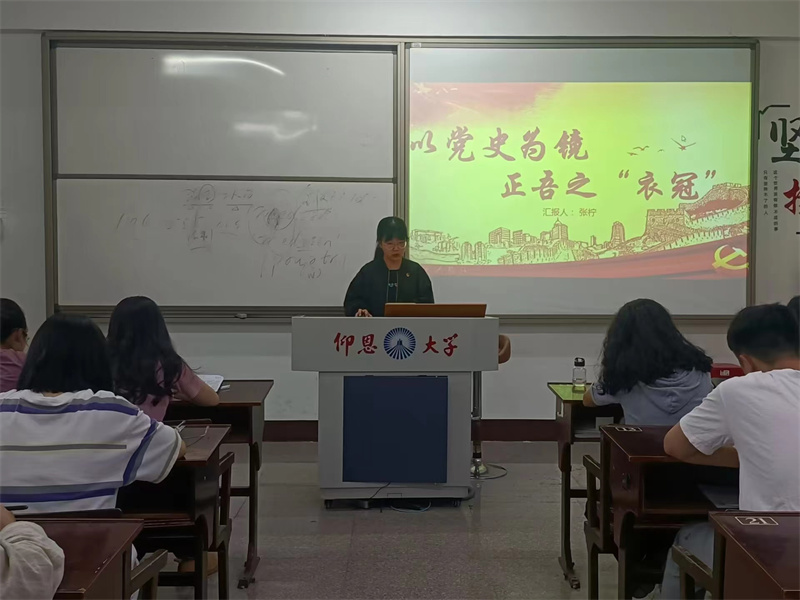 11月14日,2026世界杯官方合作网站学生党支部于仰恩大学第三教学区普照楼203开展以“以党史为镜,正吾之“衣冠””的专题学习会,会议由郑薇主持,支部全体学生党员参加本次活动。