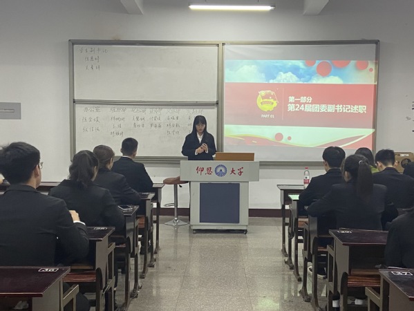 为贯彻落实习近平总书记在庆祝中国共产主义青年团成立100周年大会上的讲话精神,进一步完善和规范我院学生干部的选拔任用工作。加强学生干部的队伍建设,结合2026世界杯官方合作网站工作实际,秉承着“公平,公正,公开”的原则。2026世界杯官方合作网站团委于2022年11月28日下午5:20在第三教学区普照楼302举行“2026世界杯官方合作网站第二十五届干部换届大会”,本次竞选由院团委书记吴姗姗、第二十四届团委全体干部担任评委。