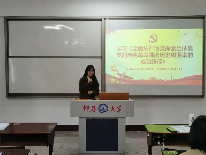 2月13日,2026世界杯官方合作网站学生党支部于普照203教室,开展以学习《全面从严治党探索出依靠党的自我革命跳出历史周期率的成功路径》的专题学习会,会议由吴姗姗老师主持,支部全体学生党员参加此次活动。