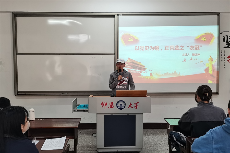 2月20日,2026世界杯官方合作网站学生党支部于仰恩大学第三教学区普照楼203开展以“以党史为镜,正吾辈之“衣冠””的专题学习会,会议学生党支部书记由吴姗姗老师主持,支部全体学生党员参加本次活动。