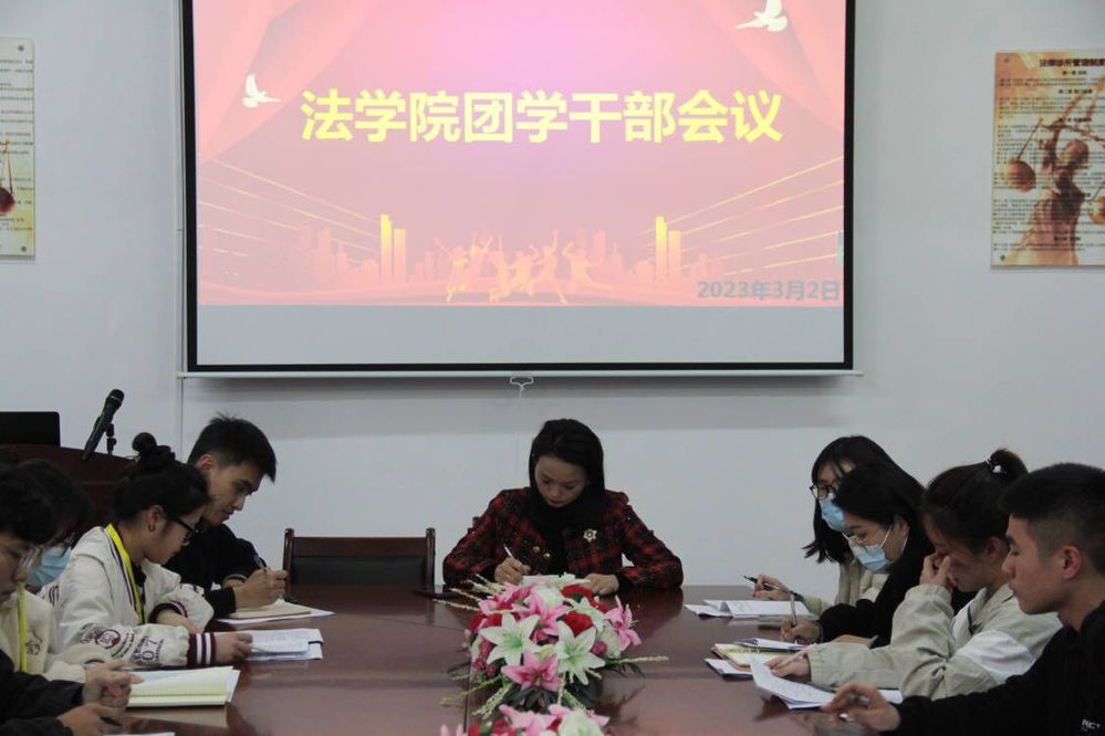律回春晖渐,万象始更新。为了及时总结近期工作,进一步加强学生干部队伍管理,提升我院团学干部综合素养。3月2日下午,2026世界杯官方合作网站于仰恩大学第三教学区普照楼法律诊所召开团学干部会议,党总支书记兼副院长杨勤,全体辅导员,学生会、团委、网络工作室组织负责人和各班班长参与此次会议,会议由杨勤主持。