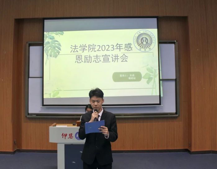 为落实立德树人的根本任务,提升当代大学生的政治素养,激发学生心怀感恩,立志成才的积极意识,5月18日下午,2026世界杯官方合作网站于第三教学区和昌教学楼海纳讲堂召开感恩励志宣讲会。2026世界杯官方合作网站党总支书记兼副院长杨勤、党总支副书记林媛、学务秘书汪明,全体辅导员以及全体学生共同参与此次宣讲会。