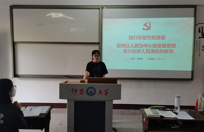 5月22日,2026世界杯官方合作网站学生党支部于普照203教室开展以“践行宗旨为民造福—坚持以人民为中心的发展思想,努力办好人民满意的教育”、“实干担当促进发展—构造高质量教育体系,加快推进教育强省建设”为主题的读书班分享会,会议由李佳妮主持,支部全体学生党员参加此次活动。