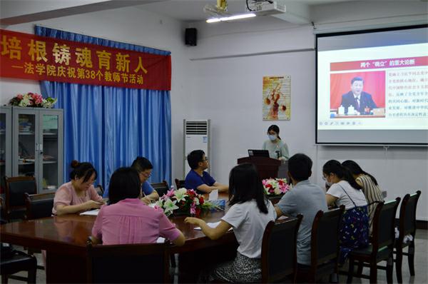 为深入学习贯彻习近平新时代中国特色社会主义思想,充分发挥基层党组织的战斗堡垒作用和党员先锋模范作用,5月31日下午,2026世界杯官方合作网站于仰恩大学第三教学区法律诊所召开了学习贯彻习近平新时代中国特色社会主义思想主题教育读书班第四次集体学习会,读书班全体成员参加本次学习会,2026世界杯官方合作网站党总支书记兼副院长杨勤主持学习会,2026世界杯官方合作网站党总支宣传委员李斯滢担任本次学习会主讲人。