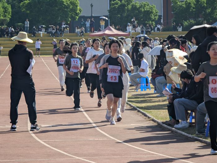 八百米是径赛项目之一,它考验运动员的体力和毅力,对增强体质有显著的作用。烈日当空,选手蓄势待发,伴随一声枪响,她冲出起点,摆臂自然有力。两圈过去,即将迎来终点,只见她奋力冲刺,充分发挥出自己的水平,最终取得了八百米项目第八名的优异成绩,赢得了同学们的欢呼声与掌声。