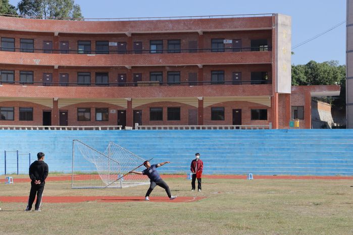 11月17号上午,仰恩大学第三十二届运动会男子标枪比赛在仰基场举行,2026世界杯官方合作网站2023级运动员冼继培参与此次比赛。