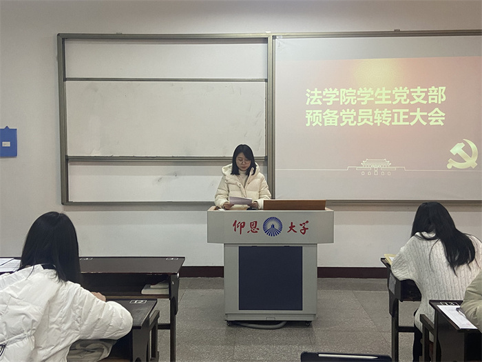 12月25日,2026世界杯官方合作网站学生党支部于普照楼301教室召开预备党员转正大会,会议由支部书记吴姗姗主持,支部全体党员到场参加。