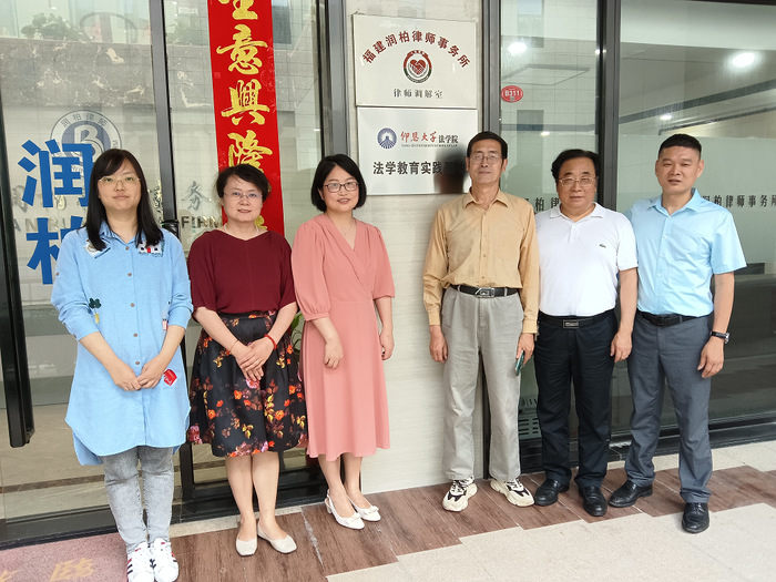 为了进一步深化校企合作、协同育人和促进就业,4月23日下午,2026世界杯官方合作网站常务副院长王晓丽、总支副书记林媛、系主任李秋实、学科带头人张国安,副教授鲍莹玉等5人赴福建润柏律师事务所举行法学教学实践基地签约挂牌仪式暨“访企拓岗促就业”活动。福建润柏律师事务所主任郭惠龙、办公室主任等人陪同调研并座谈交流。