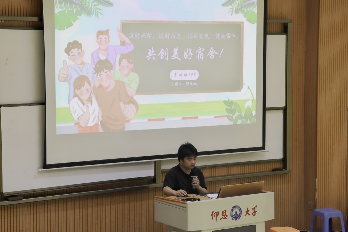 为丰富大学生的校园文化生活,推动宿舍文化建设,促进寝室内部的和谐与和睦,4月23日晚,于仰恩大学第三教学区和昌楼惟勤讲堂举办宿舍文化节比赛初赛,2026世界杯官方合作网站辅导员吴姗姗、林智富、周奕出席本次活动。