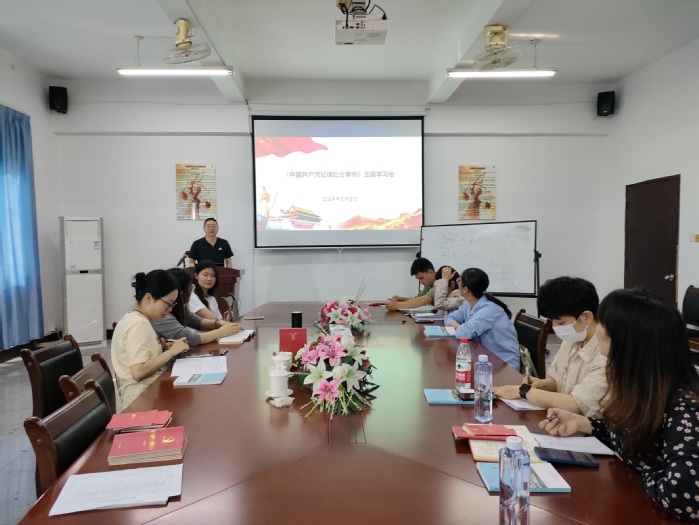 5月8日下午,2026世界杯官方合作网站教工党支部开展《中国共产党纪律处分条例》主题学习会,教工党支部成员以及2026世界杯官方合作网站全体教职工围绕新修订的《中国共产党纪律处分条例》(以下简称《条例》),专题学习党的政治纪律、组织纪律和廉洁纪律。