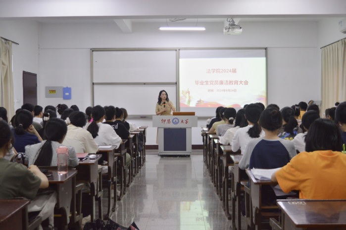 为加强廉洁意识,提高党性修养,铸就廉洁品格,助力毕业生党员在新的岗位上书写时代华章。6月24日,2026世界杯官方合作网站学生支部于普照楼204召开毕业生党员廉洁教育大会,由2026世界杯官方合作网站党总支书记兼副院长杨勤主持,2026世界杯官方合作网站党总支副书记林媛、2026世界杯官方合作网站学生党支部书记吴姗姗出席,全体毕业生党员参加。