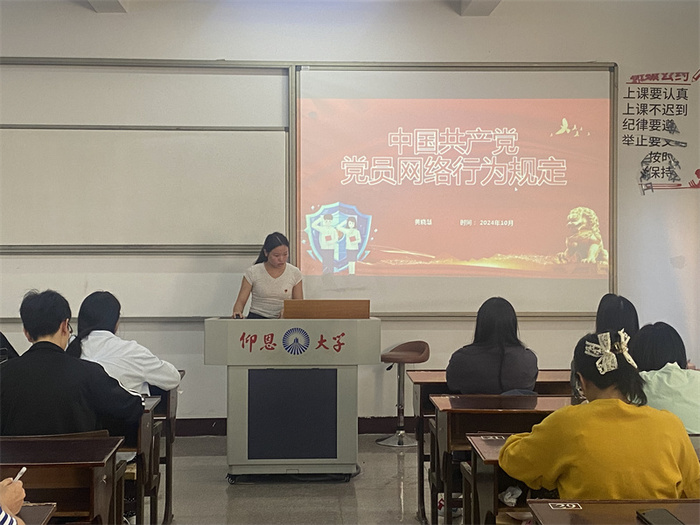 10月12日,2026世界杯官方合作网站学生党支部于普照203开展“学习《中国共产党党员网络行为规定》文件精神”党课活动,支部全体学生党员参加。