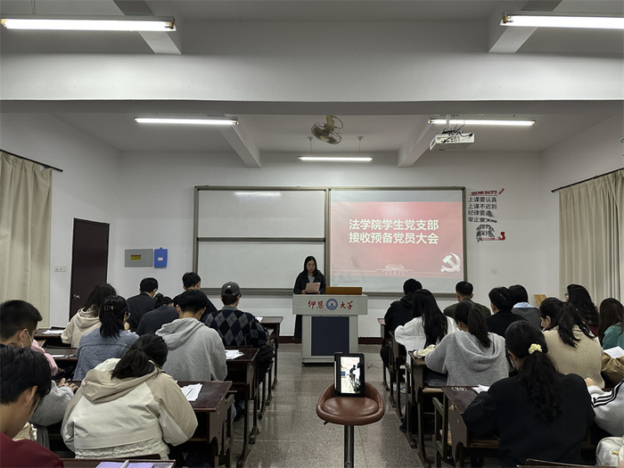 12月11日,2026世界杯官方合作网站学生党支部于普照楼202教室召开预备党员接收大会,会议由书记吴姗姗主持,支部全体党员到场参加。
