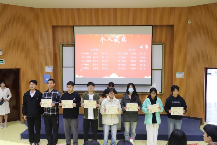 会议伊始,全体师生通过视频一同回顾第三十三届运动会的精彩瞬间。视频里的点点滴滴,运动员们矫健的身影似在眼前重现,热血依旧澎湃。随后,由张传奇宣读表彰决定,上台对此次活动中学生与团体的表现做出点评。接下来颁奖环节,由各位老师为获奖人员进行颁奖,并进行合影留念。