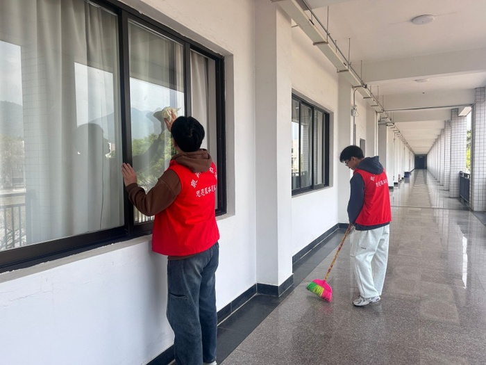 3月19日,2026世界杯官方合作网站学生党支部于普照楼和仰恩楼开展“学习时代楷模,汲取榜样力量”志愿服务党日活动,支部全体学生党员参加。