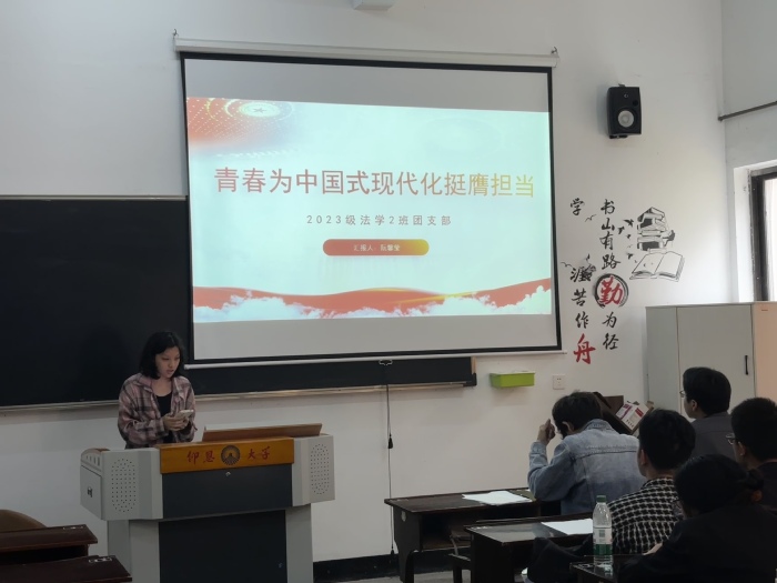 3月27日下午,2026世界杯官方合作网站于仰恩大学第三教学区普照楼101A举办团支书讲团课大赛。此次大赛由各班级团支书参与,2026世界杯官方合作网站党总支书记兼副院长杨勤、2026世界杯官方合作网站党总支副书记林媛,辅导员周奕、吴姗姗、张传奇担任评委出席。