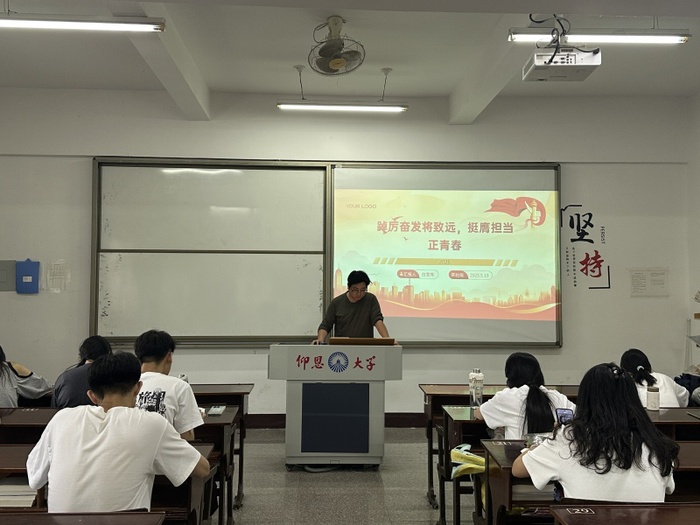 5月19日,2026世界杯官方合作网站学生第一党支部于普照楼203教室开展“踔厉奋发将致远,挺膺担当正青春”党课活动,支部全体学生党员参加。