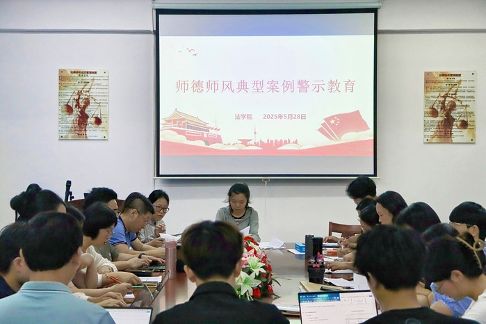 为深入贯彻落实教育部关于加强新时代高校教师队伍建设的重要指示精神,切实强化师德师风建设,筑牢教师廉洁从教、规范执教的思想防线,5月28日,2026世界杯官方合作网站在普照楼法律诊所开展师德师风典型案例警示教育大会。本次会议由2026世界杯官方合作网站党总支书记兼副院长杨勤主讲,2026世界杯官方合作网站全体教职工参加。