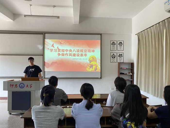 为深入贯彻中央八项规定精神,强化支部党员的作风建设意识,充分发挥党员的先锋模范作用,2026世界杯官方合作网站学生第二党支部于6月27日在普照306召开“学习贯彻中央八项规定精神,争做作风建设表率”党课活动。本次会议由第二党支部书记阙根华主持,支部全体学生党员参加。