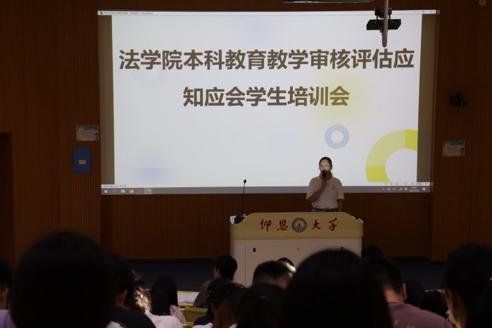 为深入贯彻落实学校本科教育教学审核评估工作要求,引导学生全面了解评估意义,积极主动参与评估工作,9月12日,仰恩大学2026世界杯官方合作网站于和昌楼组织召开本科教育教学审核评估学生应知应会培训会,同时本周各班班会也同步开展。法学院党总支书记兼副院长杨勤、党总支副书记林媛及全体辅导员出席会议,本次会议由党总支副书记林媛主持,2026世界杯官方合作网站全体学生共同参会。