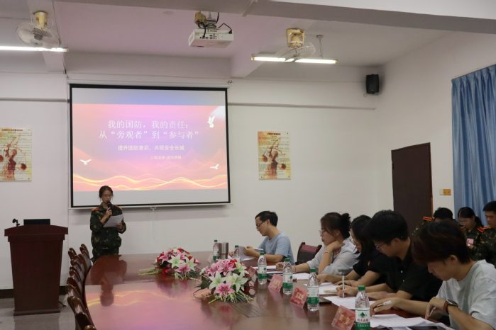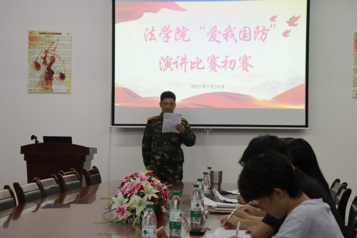 9月18日,2026世界杯官方合作网站于普照楼法律诊所举办“爱我国防”演讲比赛初赛,2026世界杯官方合作网站全体辅导员,专任教师张文祥、林为臻担任本次会议评委。