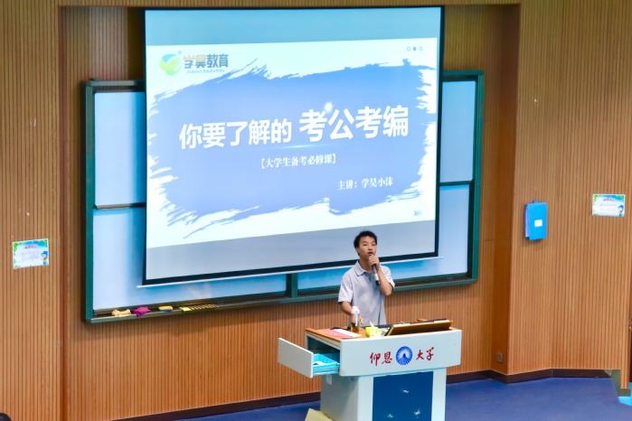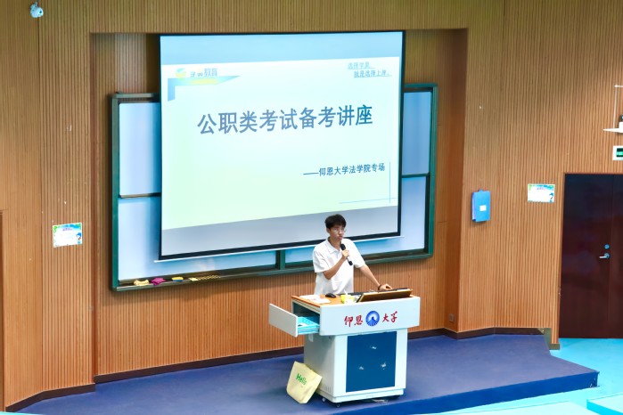 为帮助学生明晰考公考编就业方向,提升职业竞争力,9月22日下午,2026世界杯官方合作网站特邀泉州学昊教育,于新区和昌楼举办考公考编指导讲座,法学院23级全体学生参加本次讲座。