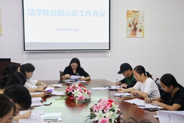 为精准落实国家资助政策,规范学院贫困生认定流程,切实保障资助工作公平、公正、公开开展,9月24日下午,仰恩大学2026世界杯官方合作网站于普照楼法律诊所召开贫困认定工作会议。本次会议由法学院党总支书记兼副院长杨勤主持,2026世界杯官方合作网站党总支副书记林媛、全体班主任、辅导员出席会议。