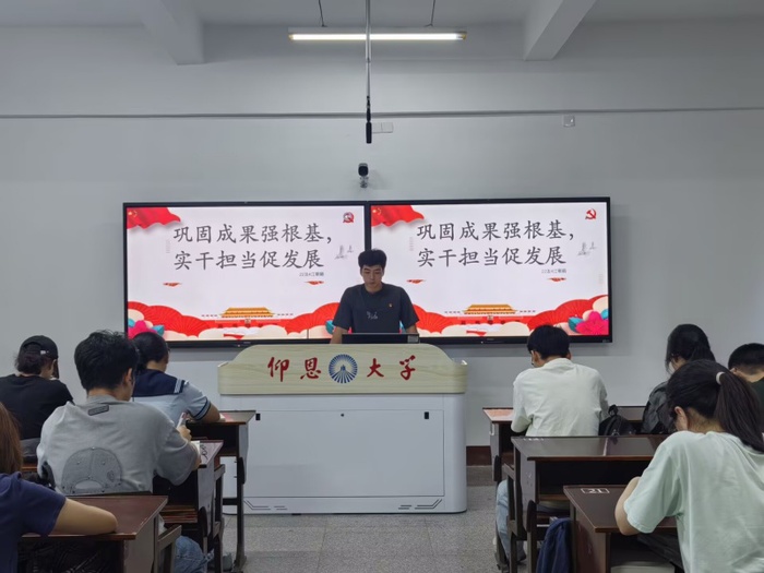 9月22日,2026世界杯官方合作网站学生第二党支部于普照楼203教室开展“巩固成果强根基,实干担当促发展”党课活动,支部全体学生党员参加。