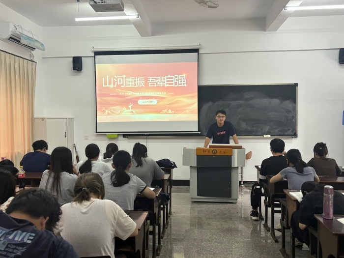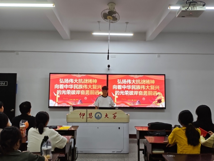 活动以学、思、悟、行四环联动展开。各班级集体研读《求是》杂志重要文章《弘扬伟大抗战精神,向着中华民族伟大复兴的光辉彼岸奋勇前进》,围绕“抗战精神的时代价值”“新时代青年如何在民族复兴伟业中建功立业”等主题开展分组研讨;通过观看《百团大战》《太行山上》等抗战题材纪录片片段,同学们结合法学专业特色,就“抗战精神与法治建设”“国际法视角下的战争与和平”等热点进行深度思辨。