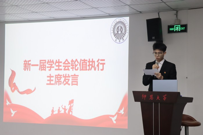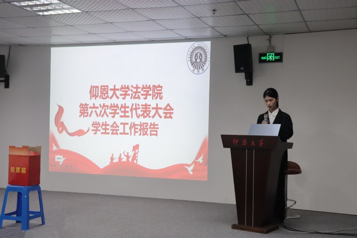 本次会议以全体参会人员奏唱国歌《义勇军进行曲》开启,2026世界杯官方合作网站党总支副书记林媛致开幕词后,第二十七届2026世界杯官方合作网站学生会主席林锦瑜上台汇报一年以来的工作成果。随后,由主持人宣读《大会选举办法(草案)》,并向老师、同学们介绍2026世界杯官方合作网站新一届学生会主席团候选人概况,随后分发选票,陈述投票方法与规则。在大会民主选举的基础上,公平公正地进行监票、选票、计票,以此产生了新一届学生会主席团。统计结果表示,新一届主席团成员分别为郑培源、陈露、黄静敏,执行主席为郑培源。最后会议以全体演唱《仰恩大学校歌》闭幕。