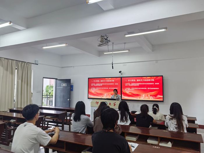 10月29日,2026世界杯官方合作网站学生第一党支部于普照楼203教室开展“登高望远学思想,踔厉奋进建新功”主题党课活动,支部全体学生党员参加。