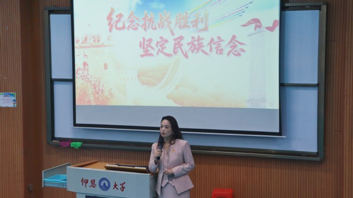 为扎实贯彻落实习近平总书记关于学校思政课建设的重要指示精神,11月17日下午,2026世界杯官方合作网站党总支书记兼副院长杨勤在第三教学区和昌教学楼海纳讲堂为2025级全体学生讲授“纪念抗战胜利 坚定民族信念”主题思政课。