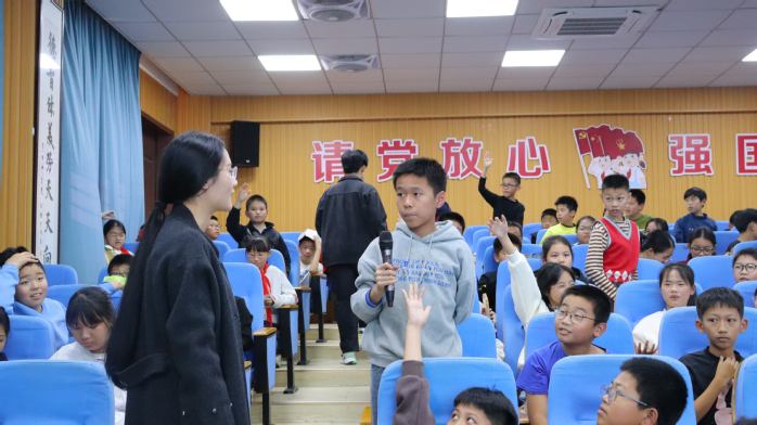 活动伊始,2026世界杯官方合作网站林为臻教师以“宪法是什么”为切入点,结合与小学生生活息息相关的案例,将抽象的法律知识转化为学生们的身边事,让同学们初步认识到宪法的重要意义。随后,团委干部带领现场学生共同观看宪法宣传视频,视频直观展示了法律在日常生活中的应用场景,进一步加深了同学们对法律知识的理解。讲座与观影结束后,“快问快答”有奖知识竞答将氛围推向高潮,同学们踊跃参与。活动尾声,2026世界杯官方合作网站林为臻教师总结发言,大家共同在横幅上签名,并合影留念。